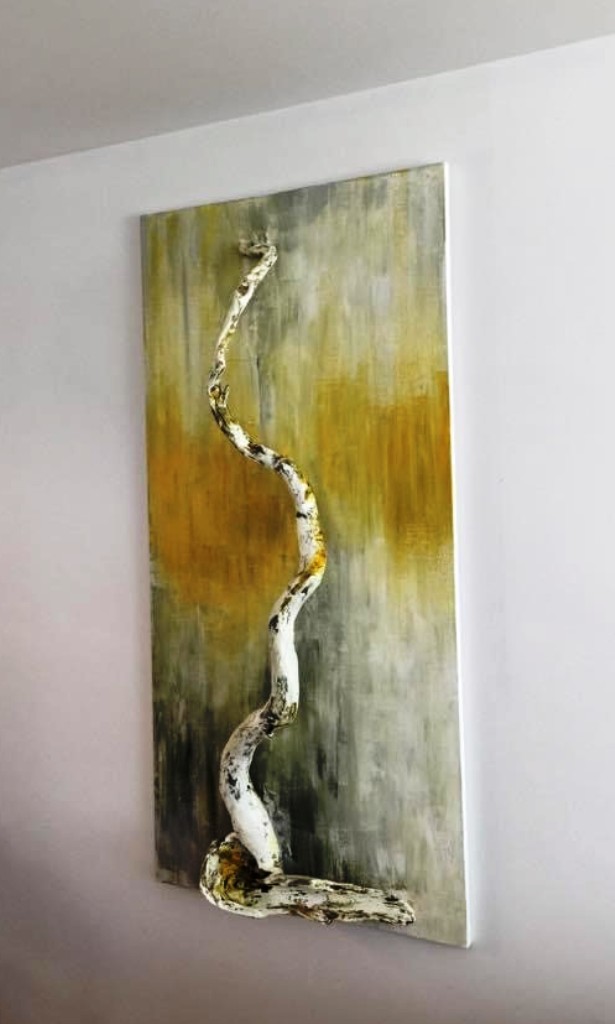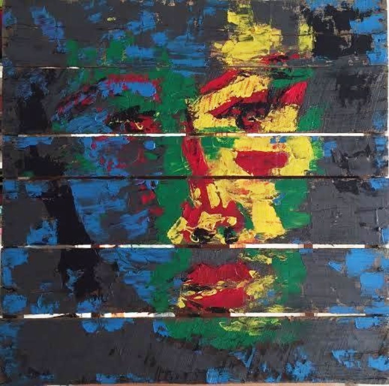 tehnica mixta pe palet de lemn