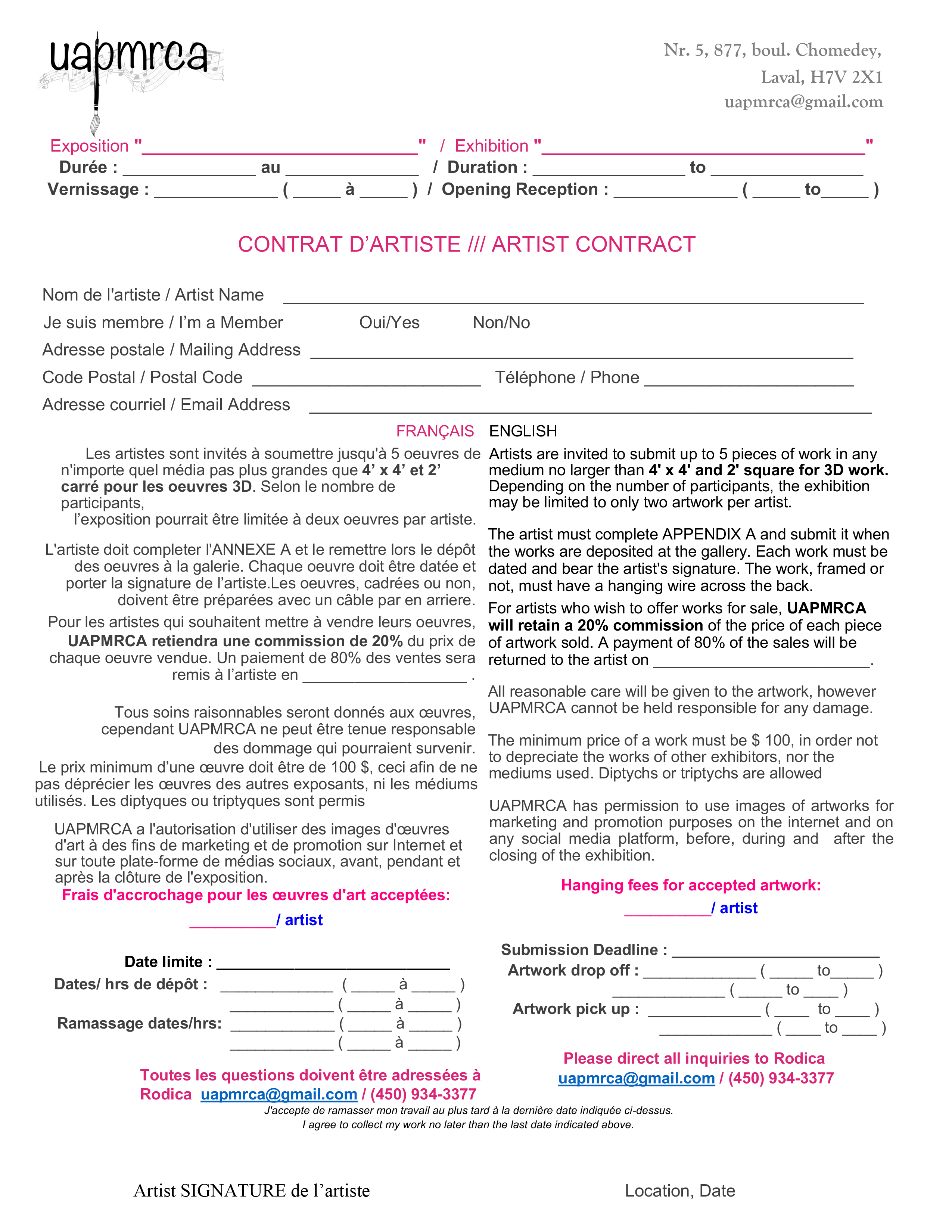 uapmrca@gmail.comLes personnes souhaitant devenir membre de l'Union des peintres et musiciens roumains du Canada doivent envoyer leur candidature par courriel à :